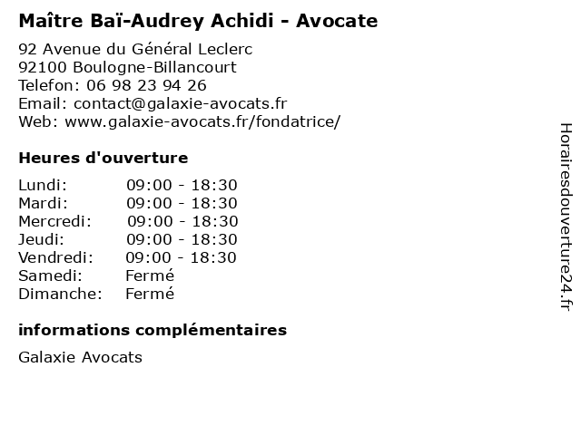 | Lundi | 09:00-18:30 |