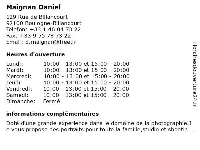 | Lundi | 10:00-13:00 et 15:00-20:00 |