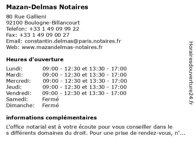 | Lundi | 09:00-12:30 et 13:30-17:00 |