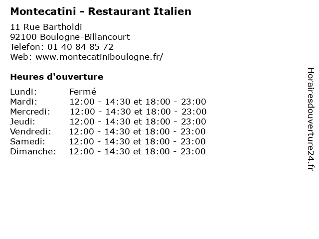 | Dimanche | 12:00-14:30 et 18:00-23:00 |