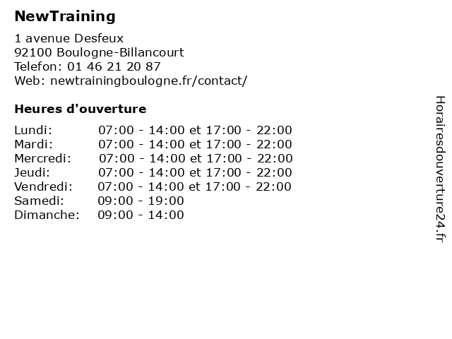 | Lundi | 07:00-14:00 et 17:00-22:00 |
