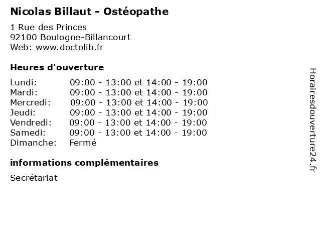 | Lundi | 09:00-13:00 et 14:00-19:00 |