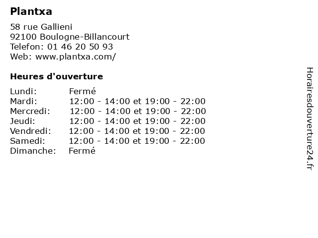| Jeudi | 12:00-14:00 et 19:00-22:00 |