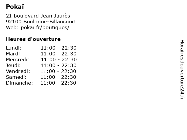 | Jeudi | 11:00-22:30 |