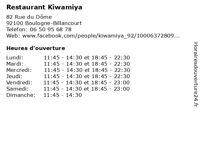 | Mardi | 11:45-14:30 et 18:45-22:30 |