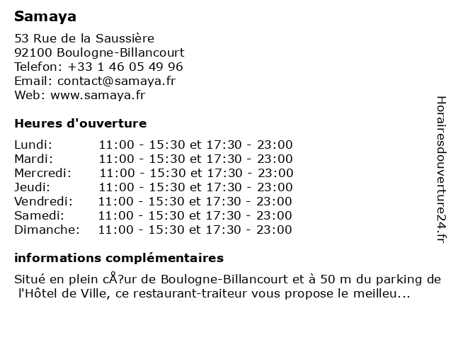 Samedi | 11:00-15:30 et 17:30-23:00 |