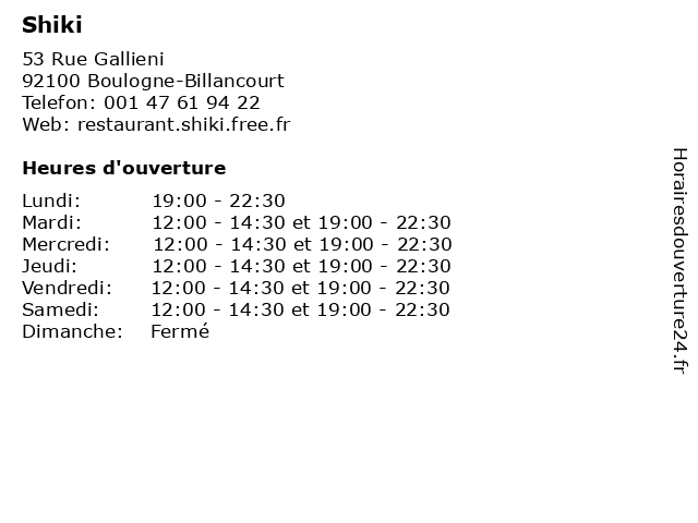 | Mardi | 12:00-14:30 et 19:00-22:30 |