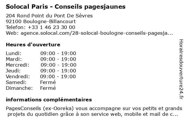 1 PagesJaunes (Distance: 0,00 km) 204 Rond-Point du Pont De Sèvres, 92100 Boulogne-Billancourt pagesjaunes 2 Solocal Paris - Siège social (Distance: 0,02 km) 204 Rond Point du Pont De Sèvres, 92100 Boulogne-Billancourt paris, siège, social, solocal 3 CFDT PagesJaunes - Solocal (Distance: 0,03 km) 204 Rond Point du Pont De Sèvres, 92100 Boulogne-Billancourt cfdt, pagesjaunes, solocal 4 Courtyard Paris Boulogne (Distance: 1,34 km) 46 Rue de Billancourt, 92100 Boulogne-Billancourt bar, boulogne, chambres, courtyard, paris, restaurant 5 Manigance Paris (Distance: 1,77 km) 3 Allee Sainte Lucie, 92130 ISSY-LES-MOULINEAUX beaute, cafe, chaussures, enfants, maison, manigance, mode femmes, mode hommes, paris, restaurant, sport 6 Novotel Suites Paris Issy les Moulineaux (Distance: 2,33 km) 86 Rue Camille Desmoulins, 92130 Issy Les Moulineaux issy, les, moulineaux, novotel, paris, suites |