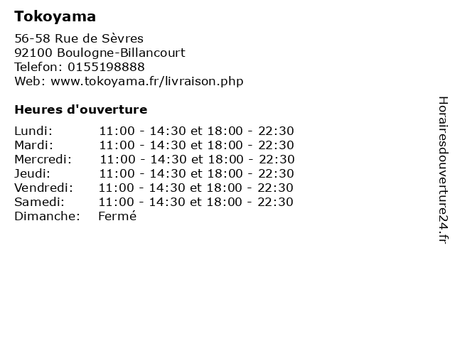 | Lundi | 11:00-14:30 et 18:00-22:30 |