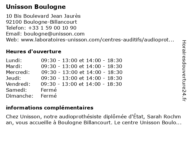 | Lundi | 09:30-13:00 et 14:00-18:30 |