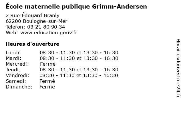 | Mardi | 08:30-11:30 et 13:30-16:30 |