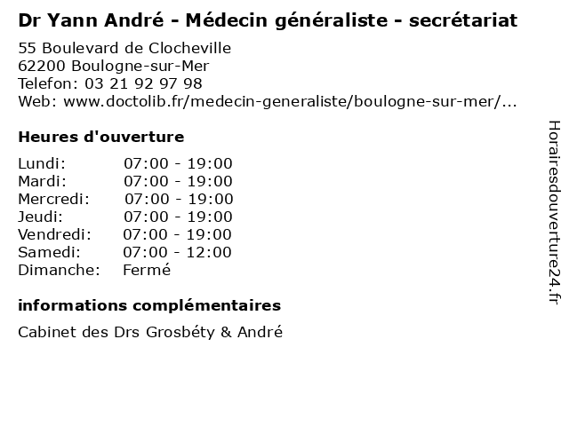 | Lundi | 07:00-19:00 |