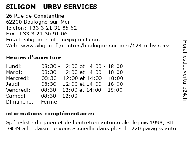 Lundi | 08:30-12:00 et 14:00-18:00 |