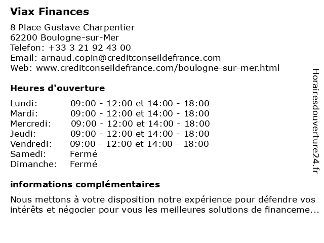 Lundi | 09:00-12:00 et 14:00-18:00 |