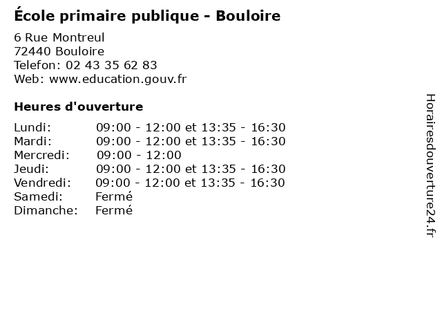 | Mardi | 09:00-12:00 et 13:35-16:30 |