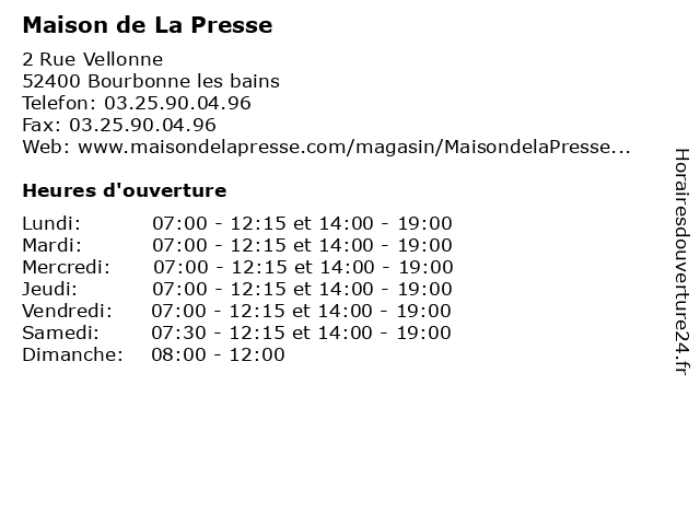 | Mardi | 07:00-12:15 et 14:00-19:00 |