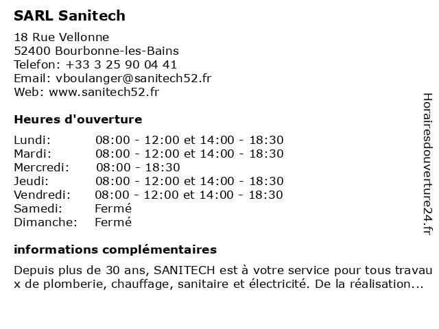 | Lundi | 08:00-12:00 et 14:00-18:30 |