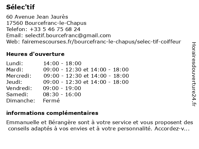 | Mardi | 09:00-12:30 et 14:00-18:00 |