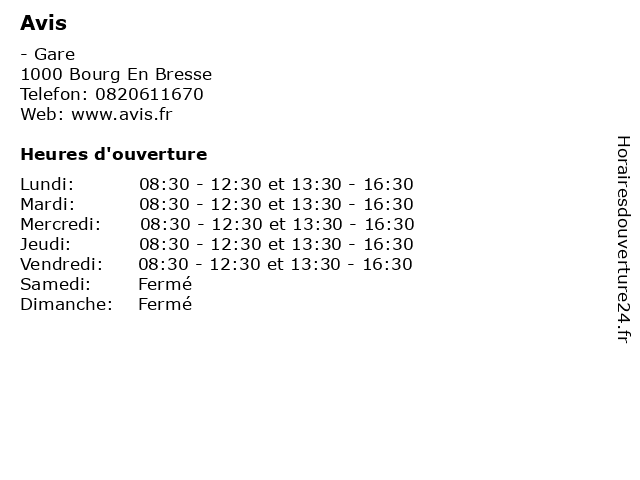 Lundi | 08:30-12:30 et 13:30-16:30 |