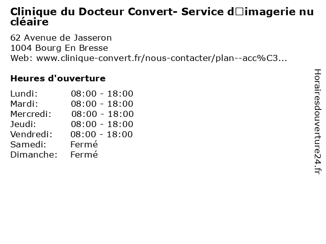 1 Clinique Convert (Distance: 0,00 km) 62 Avenue de Jasseron, 01004 Bourg-en-Bresse clinique, convert, docteur, medecins, sante 2 Clinique du Docteur Convert- Services de soins (Distance: 0,00 km) 62 Avenue de Jasseron, 01004 Bourg En Bresse clinique, convert, de, docteur, du, medecins, sante, services, soins 3 Clinique du Docteur Convert- Service de réanimation (Distance: 0,00 km) 62 Avenue de Jasseron, 01004 Bourg En Bresse clinique, convert, de, docteur, du, medecins, réanimation, sante, service 4 Clinique du Docteur Convert- Service de radiologie (Distance: 0,00 km) 62 Avenue de Jasseron, 01004 Bourg En Bresse clinique, convert, de, docteur, du, medecins, radiologie, sante, service 5 Clinique du Docteur Convert- Centre CINESE de kinésithérapie (Distance: 0,00 km) 62 Avenue de Jasseron, 01004 Bourg En Bresse centre, cinese, clinique, convert, de, docteur, du, kinésithérapie, medecins, sante 6 Clinique du Docteur Convert-Unité de soins intensifs cardiologique (Distance: 0,00 km) 62 Avenue de Jasseron, 01004 Bourg En Bresse cardiologique, clinique, convert, de, docteur, du, intensifs, medecins, sante, soins, unité |