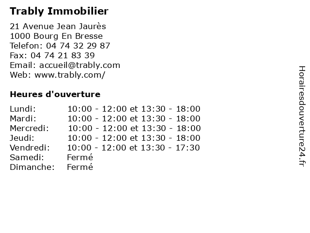 1 Trably Business Bourg-en-Bresse (Distance: 0,08 km) 21 Avenue Jean Jaurès, 01000 Bourg-en-Bresse agence, bourg, bresse, business, en, immobilier, trably 2 EIC TRANSACTIONS (Distance: 0,12 km) 17 Avenue Alphonse Baudin, 01000 Bourg en Bresse eic, transactions 3 E.I.C Transactions (Distance: 0,19 km) 17 Avenue Alphonse Baudin, 01000 Bourg-en-Bresse e.i.c, transactions 4 Green Acres (Transactions Dauphiné Savoie) (Distance: 0,83 km) 54 R Bourgmayer, 01000 Bourg En Bresse acres, apartment rentals, dauphiné, green, home sales, real estate, savoie, transactions 5 Green Acres (Corcy Transactions) (Distance: 34,37 km) 177 Place De La Croix, 01390 Saint-André-de-Corcy acres, apartment rentals, corcy, green, home sales, real estate, transactions 6 Green Acres (Montluel Transactions ) (Distance: 40,67 km) 61 Place Carnot0, 01120 Montluel acres, apartment rentals, green, home sales, montluel, real estate, transactions |