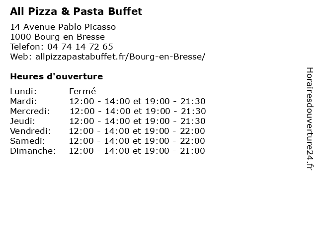 | Mardi | 12:00-14:00 et 19:00-21:30 |