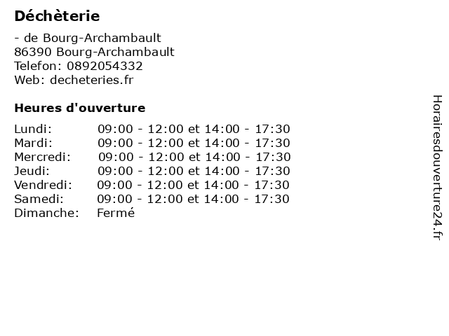 | Samedi | 09:00-12:00 et 14:00-17:30 |
