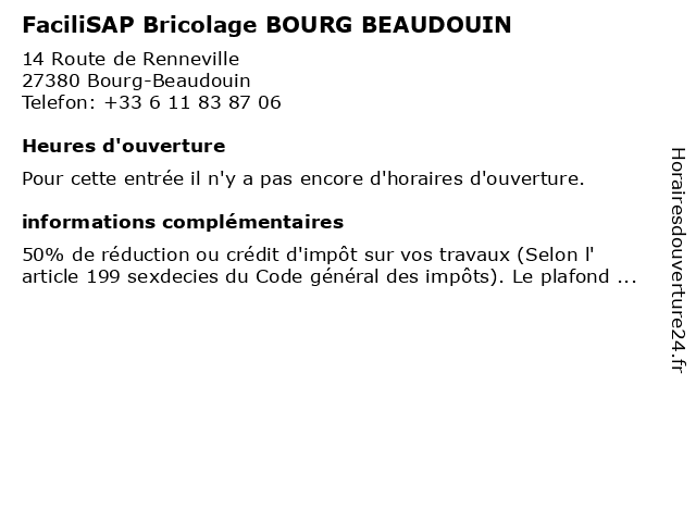 Appeler FaciliSAP Bricolage BOURG BEAUDOUIN | |