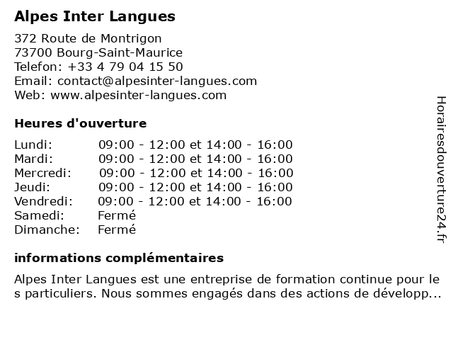 | Mercredi | 09:00-12:00 et 14:00-16:00 |