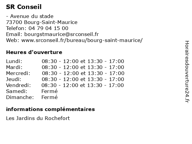 | Lundi | 08:30-12:00 et 13:30-17:00 |