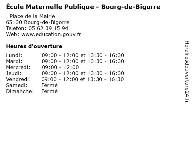 | Mardi | 09:00-12:00 et 13:30-16:30 |