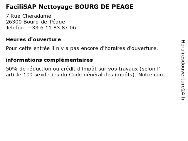 Appeler FaciliSAP Nettoyage BOURG DE PEAGE | |