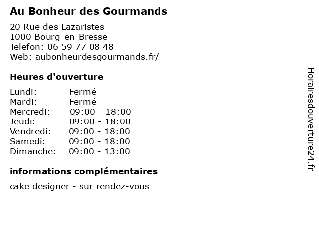 | Lundi | Fermé |