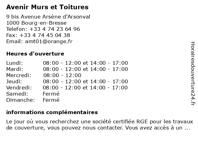 | Mardi | 08:00-12:00 et 14:00-17:00 |