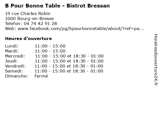 | Mercredi | 11:00-15:00 et 18:30-01:00 |