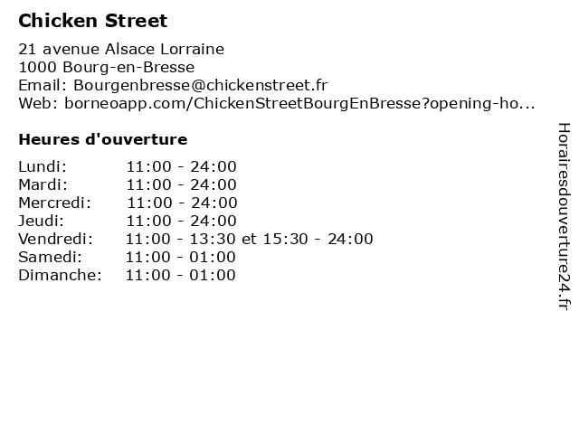 | Mercredi | 11:00-24:00 |