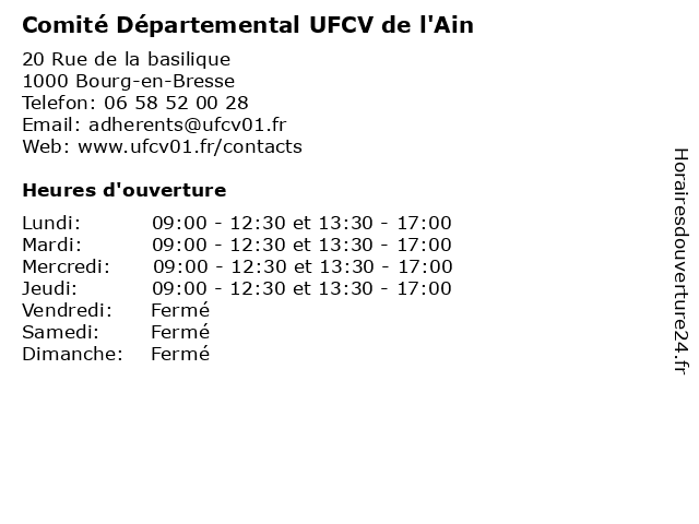 | Mardi | 09:00-12:30 et 13:30-17:00 |