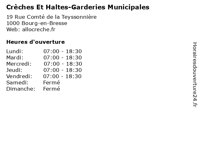 | Lundi | 07:00-18:30 |