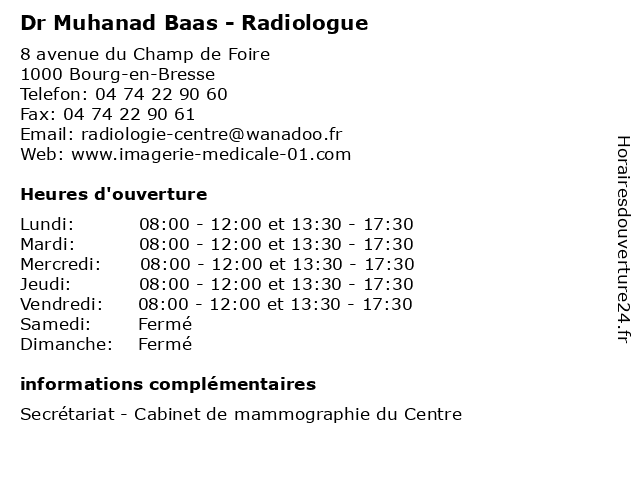 1 Dr Muhanad Baas - Radiologue (Distance: 1,84 km) 62 avenue de Jasseron, 01000 Bourg-en-Bresse baas, consultation, docteur, dr, med, muhanad, médecin, médecine, radiologue, traitement 2 Dr Muhanad Baas - Radiologue (Distance: 32,80 km) 15 bis Rue du Chemin de Fer, 01100 Oyonnax baas, consultation, docteur, dr, med, muhanad, médecin, radiologue, traitement 3 Dr Muhanad Baas - Radiologue (Distance: 46,32 km) 350 avenue Fernand Point, 71502 Louhans baas, consultation, docteur, dr, med, muhanad, médecin, médecine, radiologue, traitement 4 Dr Bernard Allimant - Radiologue (Distance: nan km) 8 avenue du Champ de Foire, 01000 Bourg-en-Bresse allimant, bernard, consultation, docteur, dr, med, médecin, médecine, radiologue, traitement 5 Dr Pierre-Yves Deschamps - Radiologue (Distance: nan km) 8 avenue du Champ de Foire, 01000 Bourg-en-Bresse consultation, deschamps, docteur, dr, med, médecin, médecine, pierre, radiologue, traitement, yves 6 Dr Catherine Flechet-Allimant - Radiologue (Distance: nan km) 8 avenue du Champ de Foire, 01000 Bourg-en-Bresse allimant, catherine, consultation, docteur, dr, flechet, med, médecin, médecine, radiologue, traitement |