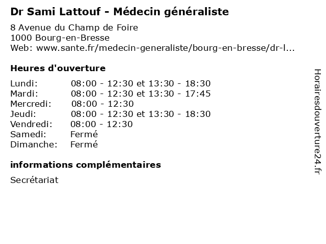 | Lundi | 08:00-12:30 et 13:30-18:30 |