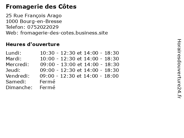 | Mercredi | 09:00-13:00 et 14:00-18:30 |