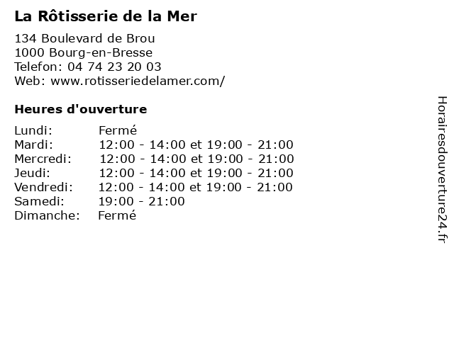 | Lundi | Fermé |