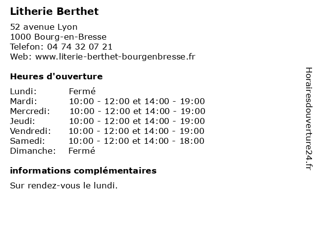 Jeudi | 10:00-12:00 et 14:00-19:00 |
