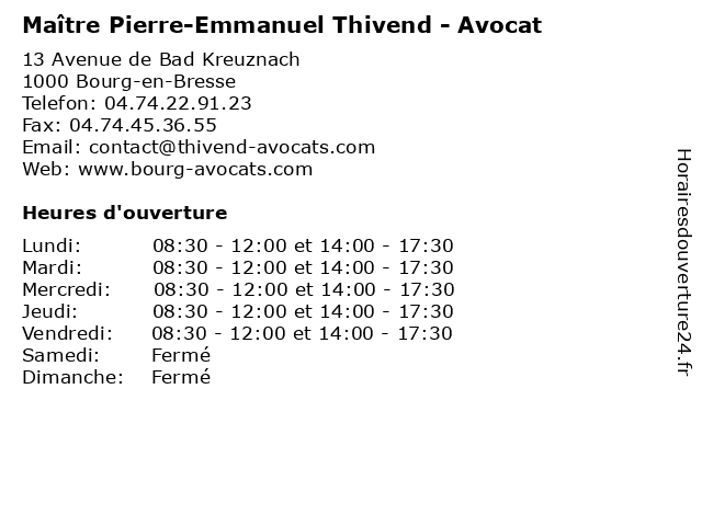 | Jeudi | 08:30-12:00 et 14:00-17:30 |