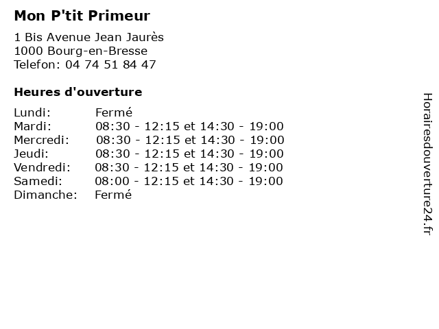 | Mardi | 08:30-12:15 et 14:30-19:00 |
