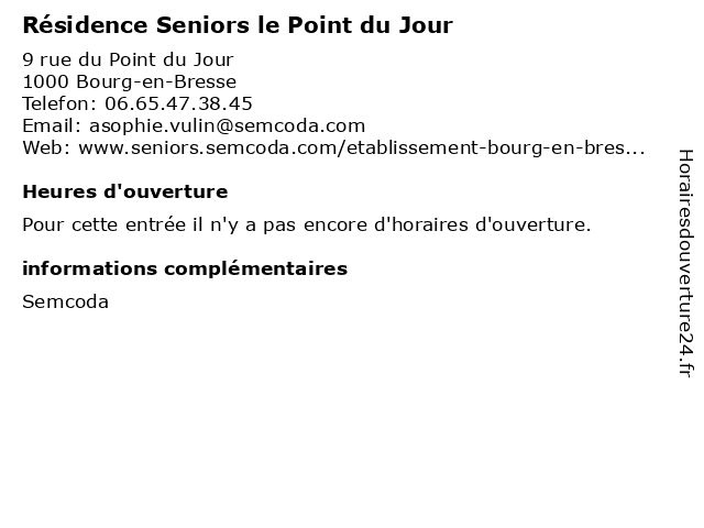 1 RESEDA Le Point du Jour (Distance: 0,05 km) 9 Rue du Point du Jour, 01000 Bourg-en-Bresse du, jour, le, point, reseda 2 Résidence Services Seniors DOMITYS - Marguerite (Distance: 0,18 km) 7 Rue du Stand, 01000 Bourg-en-Bresse appartement domitys, appartement indépendant senior, appartements pour retraités, domitys, location meublé résidence senior, logement privé residence senior, logements pour personnes âgées autonomes, maison senior location, marguerite, meilleure residence senior, prix residence personne agee, prix résidence senior location, residence autonome, residence domitys, residence senior, residence senior domitys, residence senior france, residences services senior, résidence, résidence pour jeunes retraités, résidence senior tarif, seniors, services, trouver residence senior, vivre en residence 3 EHPAD - Résidence Bon Repos (Distance: 1,30 km) 2 rue du Docteur Roux, 01000 Bourg-en-Bresse bon, ehpad, foyer, hébergement, repos, retraite, résidence, soins 4 Alfa3a - Résidence Paul Barberot (Distance: 1,39 km) 32 Avenue des Anciens Combattants, 01000 Bourg-en-Bresse alfa3a, barberot, paul, résidence 5 Alfa3a - Résidence jeunes Les 3 Saules (Distance: 1,55 km) 16 Place Alexandre Dumas, 01000 Bourg-en-Bresse alfa3a, jeunes, les, résidence, saules 6 Alfa3a - Résidence Auguste Renoir (Distance: 1,67 km) 4 Rue Auguste Renoir, 01000 Bourg-en-Bresse alfa3a, auguste, renoir, résidence |