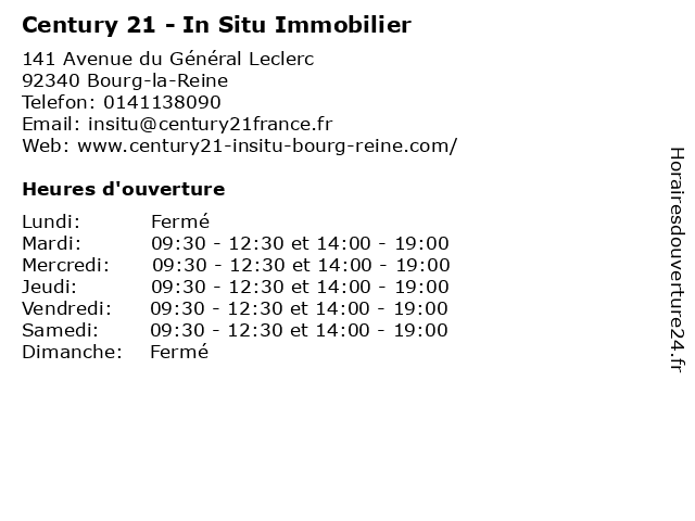 2 Century 21 - L'Immobilière RN 20 (Distance: 1,52 km) 9 rue Jean Jaurès, 94240 L'Haÿ-les-Roses 20, 21, agence, century, gestion, immobilier, l'immobilière, location, rn, transaction, vente 3 Century 21 - Eureka (Distance: 2,54 km) 29 avenue du 8 Mai 1945, 94260 Fresnes 21, agence, century, eureka, gestion, immobilier, location, transaction, vente 4 Century 21 - Adm Grand Sud (Distance: 3,97 km) 146 Avenue de la République, 92120 Montrouge 21, achat, adm, agence, appartement, century, grand, immobilier, immobilière, location, maison, sud, vente 5 Ecole Elémentaire Privée Montessori 21 (Distance: 4,44 km) 2 allée Robert-Debré, 92350 Le Plessis-Robinson 21, 2lémentaire, cours, ecole, elémentaire, maternelle, montessori, primaire, privé, privée, école, éducation 6 Bibliothèque Universitaire Faculté de Médecine(21-25 Mars) (Distance: 4,61 km) 63 Rue Gabriel Péri, 94276 Le Kremlin-Bicetre 21, 25, bibliothèque, de, faculté, librarie, mars, médecine, médiathèque, services, universitaire, université |