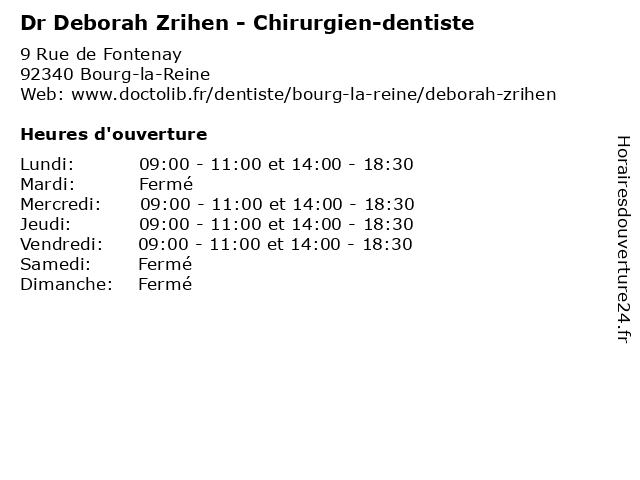| Lundi | 09:00-11:00 et 14:00-18:30 |