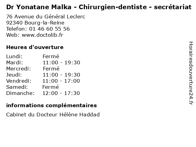 1 Dr Yonatane Malka - Chirurgien-dentiste - secrétariat (Distance: 0,00 km) 76 Avenue du Général Leclerc, 92340 Bourg-la-Reine chirurgien, chirurgien-dentiste, dentiste, dr, malka, médecins, médicaments, santé, secrétariat, spécialiste, yonatane 2 Dr Yonatane Malka - Chirurgien-dentiste - secrétariat (Distance: 0,00 km) 76 Avenue du Général Leclerc, 92340 Bourg-la-Reine chirurgien, chirurgien-dentiste, dentiste, dr, malka, médecins, médicaments, santé, secrétariat, spécialiste, yonatane 3 Dr Armand Malka - Pédiatre (Distance: 5,53 km) 175 Rue d'Alésia, 75014 Paris armand, docteur, dr, generaliste, malka, medical, pédiatre, soin 4 Dr Isis Malka - Gynécologue médicale et obstétrique (Distance: 5,84 km) 6 Avenue du Noyer Lambert, 91300 Massy bebe, dr, et, gynecologie, gynécologue, isis, malka, maternite, médicale, obstetrique, obstétrique 5 Dr Nathalie Malka - Chirurgien-dentiste (Distance: 8,21 km) 41 rue Verdun, 94220 Charenton le Pont chirurgien, consultation, dentiste, docteur, dr, malka, med, médecin, médecine, nathalie, traitement 6 Dr Yaacov Malka - Chirurgien viscéral et digestif (Distance: 8,98 km) 184 Rue du Faubourg Saint-Antoine, 75012 Paris chirurgien, consultation, digestif, docteur, dr, et, malka, med, médecin, traitement, viscéral, yaacov |