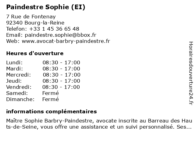 1 Maître Sophie Barbry-Paindestre - Avocate (Distance: 0,01 km) 7 Rue de Fontenay, 92340 Bourg-la-Reine avocate, avocats, barbry, civils, droits, juridiques, maître, paindestre, sophie 2 Dr Sophie Grillon - Ophtalmologue - secrétariat (Distance: 0,18 km) 60 Boulevard du Maréchal Joffre, 92340 Bourg-la-Reine consultation, docteur, dr, grillon, med, médecin, médecine, ophtalmologue, secrétariat, sophie, traitement 3 Dr Anne-Sophie Fayemendy-Hennebicque - Radiologue (Distance: 2,91 km) 133 avenue de la Résistance, 92350 Le Plessis Robinson anne, consultation, docteur, dr, fayemendy, hennebicque, med, médecin, médecine, radiologue, sophie, traitement 4 Dr Anne-Sophie Carrie - Pneumologue - secrétariat (Distance: 3,16 km) 41 Avenue Aristide Briand, 92160 Antony anne, carrie, consultation, docteur, dr, med, médecin, médecine, pneumologue, secrétariat, sophie, traitement 5 Medecin Sophie Olesker (Médecin généraliste) (Distance: 3,44 km) 11 Auguste Mounie, 92160 Antony docteur, généraliste, medecin, médecin, olesker, sante, services, sophie 6 Medecin Sophie Olesker - Consultation à domicile (Médecin généraliste) (Distance: 3,44 km) 11 Auguste Mounie, 92160 Antony consultation, docteur, domicile, généraliste, medecin, médecin, olesker, sante, services, sophie |